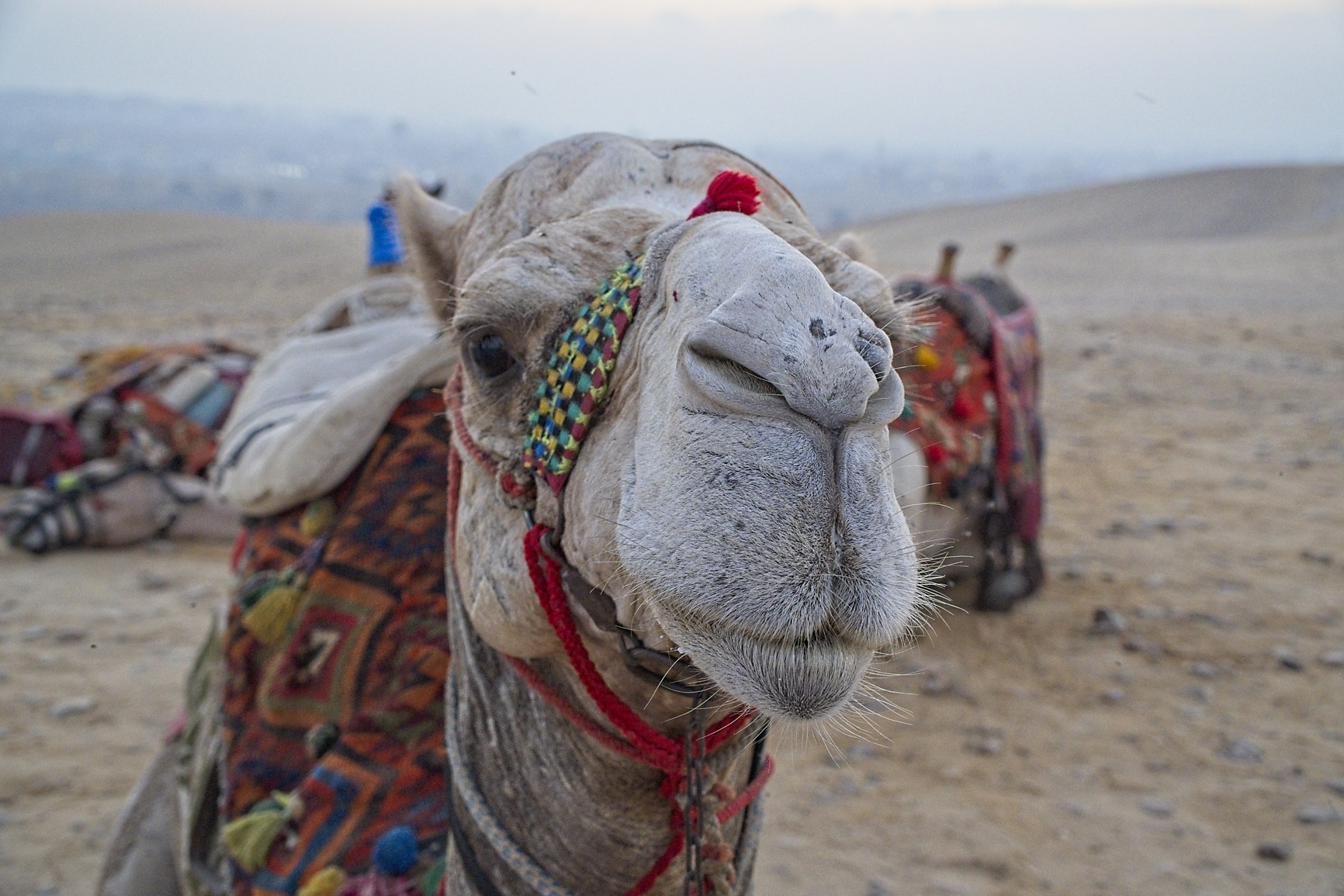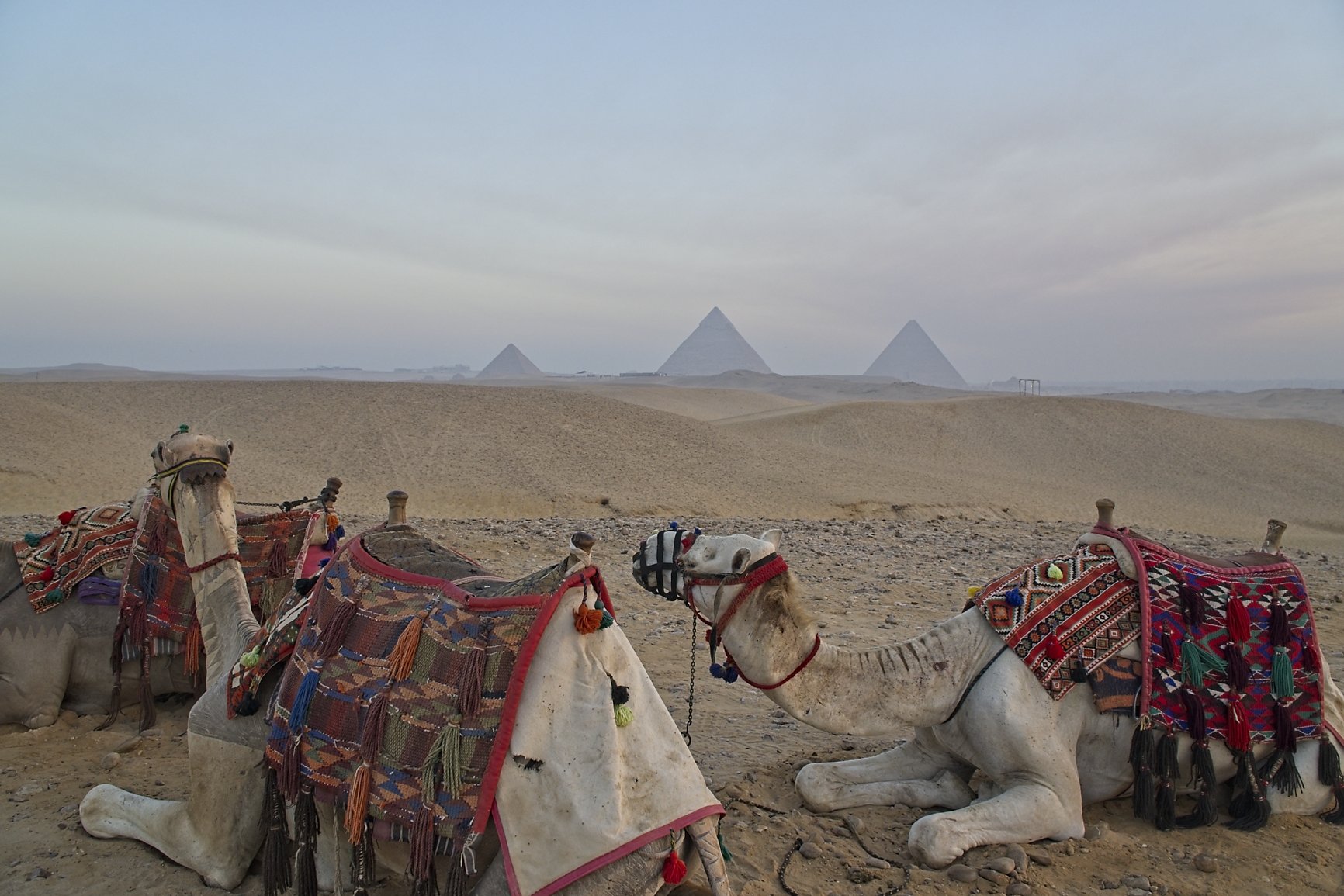 After a great week with the kids, grand kids, family and friends it is now time to start the Egypt and Jordan tour. Today everyone on the tour will arrive at the hotel, as I got here a day earlier (last night at 23:00) I had the opportunity to do a sunrise tour to the Giza Pyramids. My Tourguide (Naddar) picked me up at 5:30 and he and our driver (Hassan) took me close to the Giza Pyramid complex. It was a nice morning but still dark when we arrived at the camel farm to start the camel ride. Yes, this tour is by camel, they take us into the Sahara dessert with a good view of the pyramids. I have never been a great fan of riding on top of an animal (horse, elephant or camel), and camels are high. When the camel get up or down you have to hold on for dear life 😊 But it is all part of the experience, I was with 4 other Australians in a very deserted Desert on top of a smelly camel!