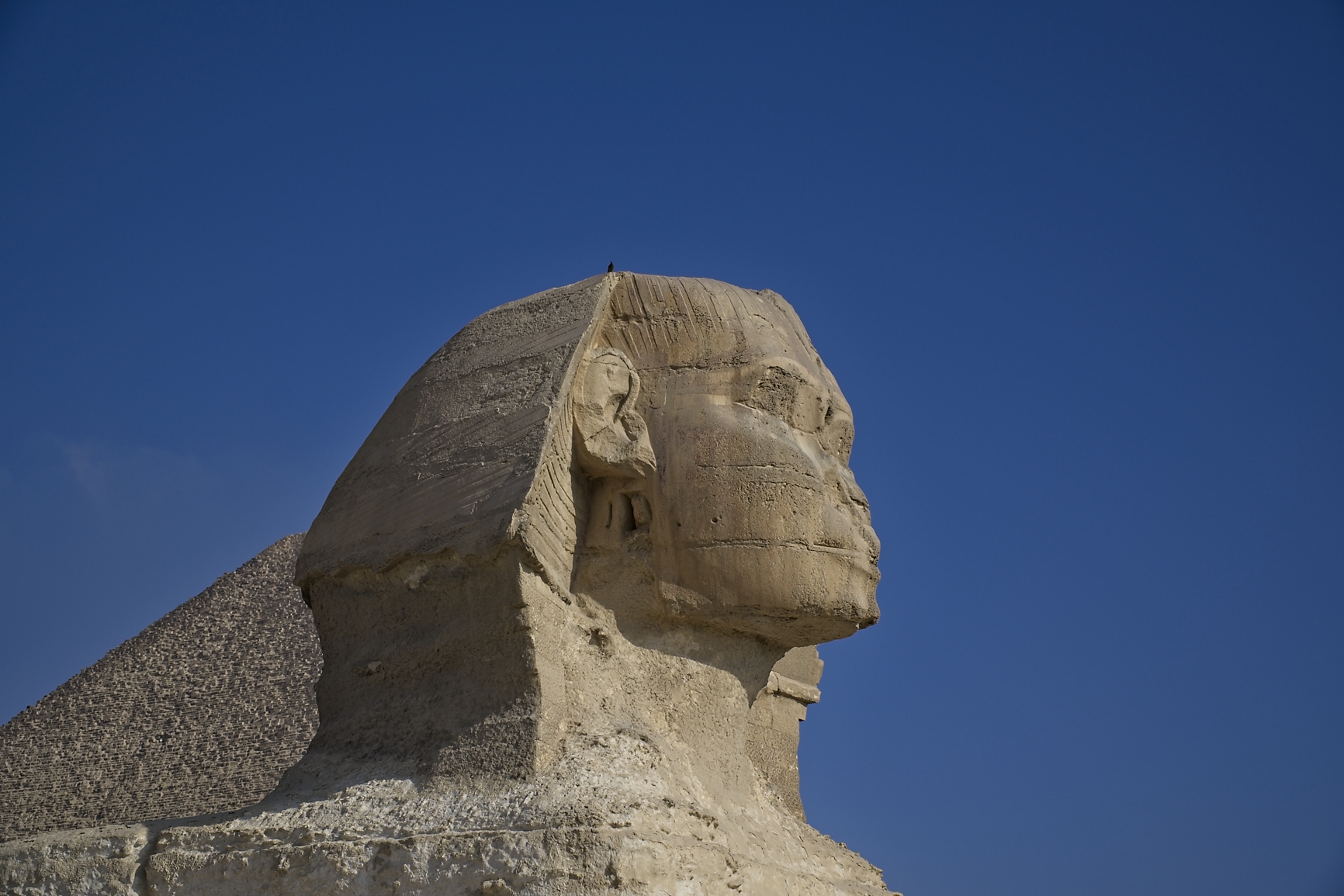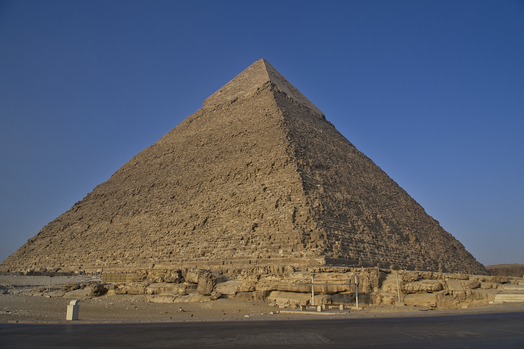 Built by King Khufu in the Fourth Dynasty of ancient Egypt’s Old Kingdom (around 2550 BCE), the Great Pyramid was the largest ever constructed in Egypt, originally reaching a height of 481 feet. What is missing is the golden pyramidion that supposedly was on top of the two large pyramids. As with many things concerning the pyramids it is a mystery if they ever existed and where they went. Another great mystery is where is Khufu? The burial chambers in the Great Pyramid have no hieroglyphs or drawings on the walls, his coffin and mummified body was never found. So why build this big monument without putting your name to it? Well, I think more of these mysteries will arise over the next two weeks.