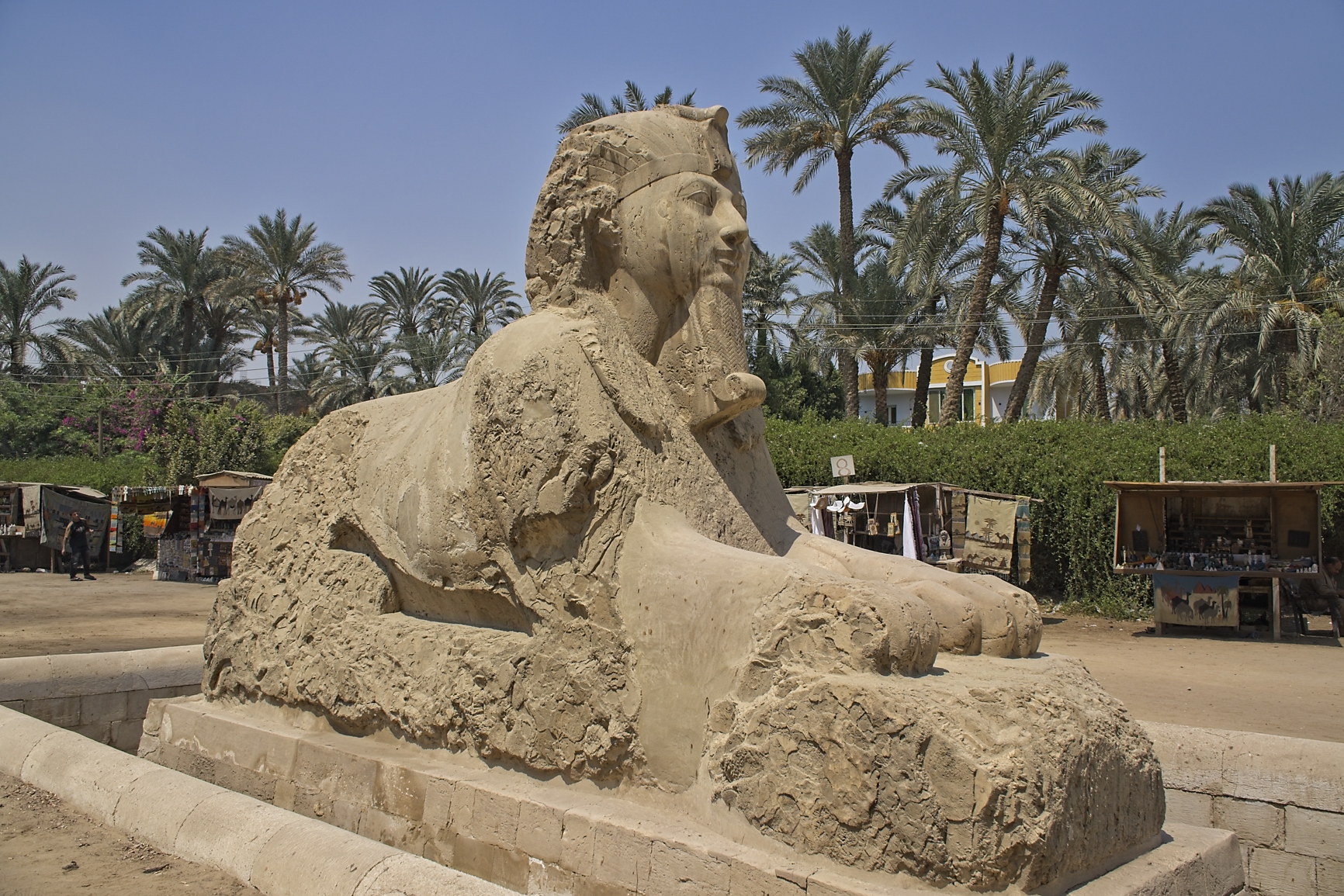 Next stop was Memphis, the ancient capital of Egypt to visit the open air museum, famous for a limestone colossus of king Ramsis II and a giant alabaster sphinx. Lots of other artifacts that they dug up around this area were on display as well. I suspect if you dig anywhere in this area you will find something interesting.