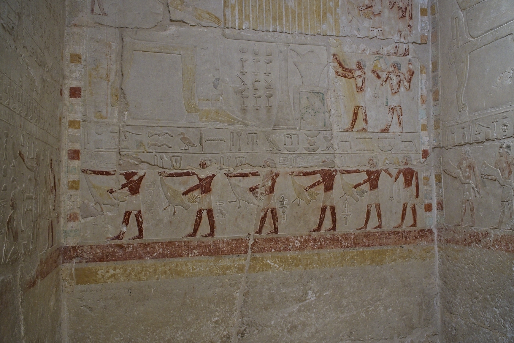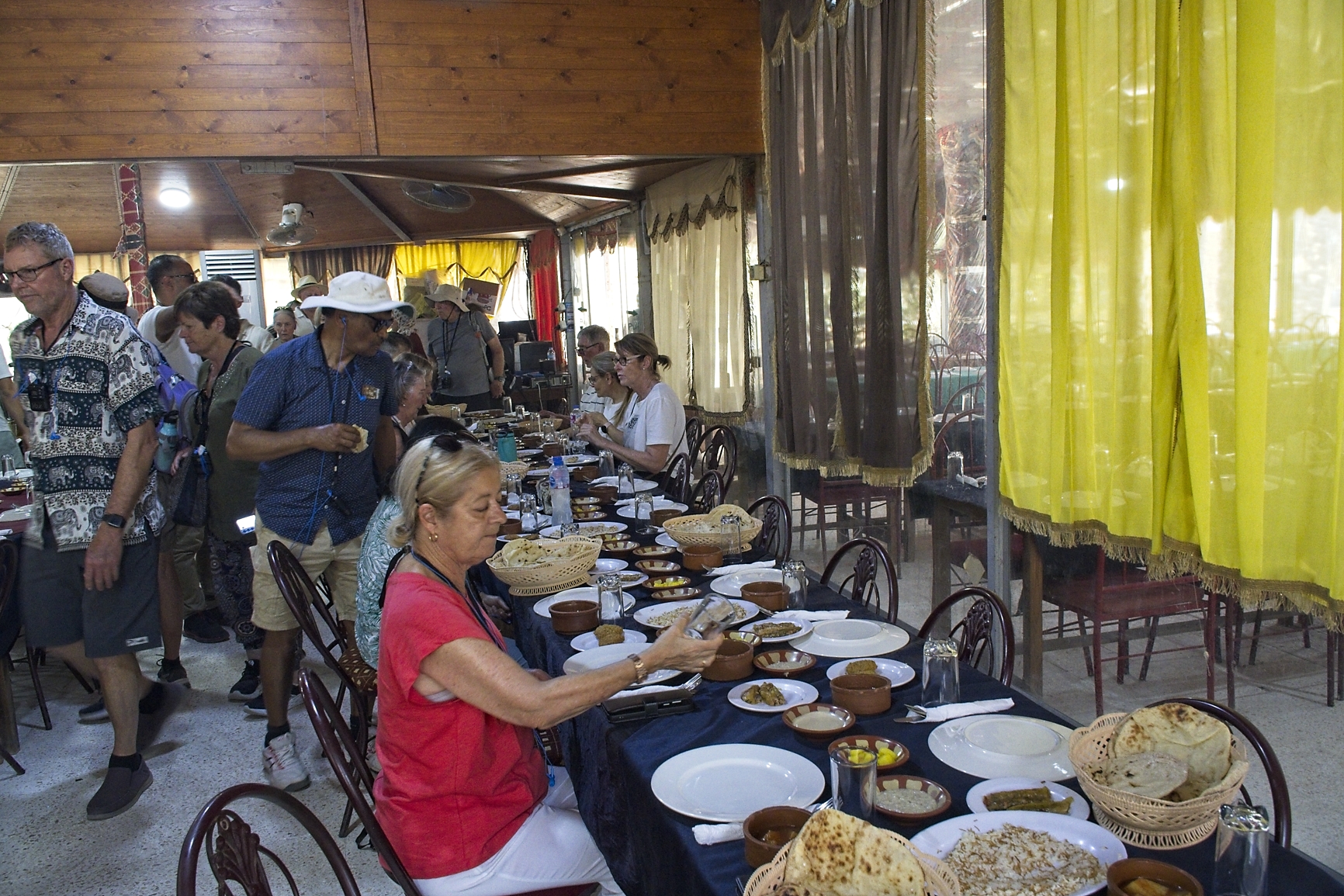 After this very interesting visit we took our bus to Saqqarah to have lunch. We were welcomed by musicians and ladies doing their typical Arabian Zaghrouta (high pitched trilling vocal) while making flatbread. We had a real Egyptian lunch with chicken and koftas.