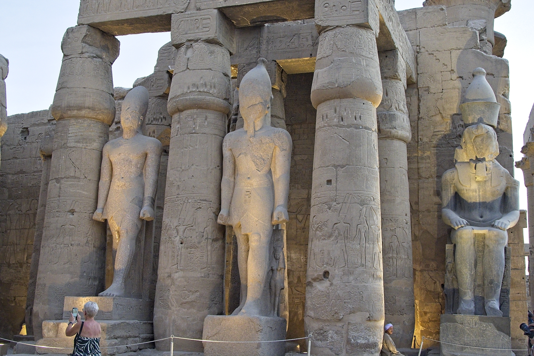 What amazes me here are the statues in front of the entry each of them is a granite statue of the king sitting on his throne. Granite scores between 6 and 7 (out of 10) on the Mohs scale of mineral hardness. In those days they only had access to wood, copper, bronze and other (harder rock). So you tell me how they were able to create such beautiful statues with such great expressions and accuracy!