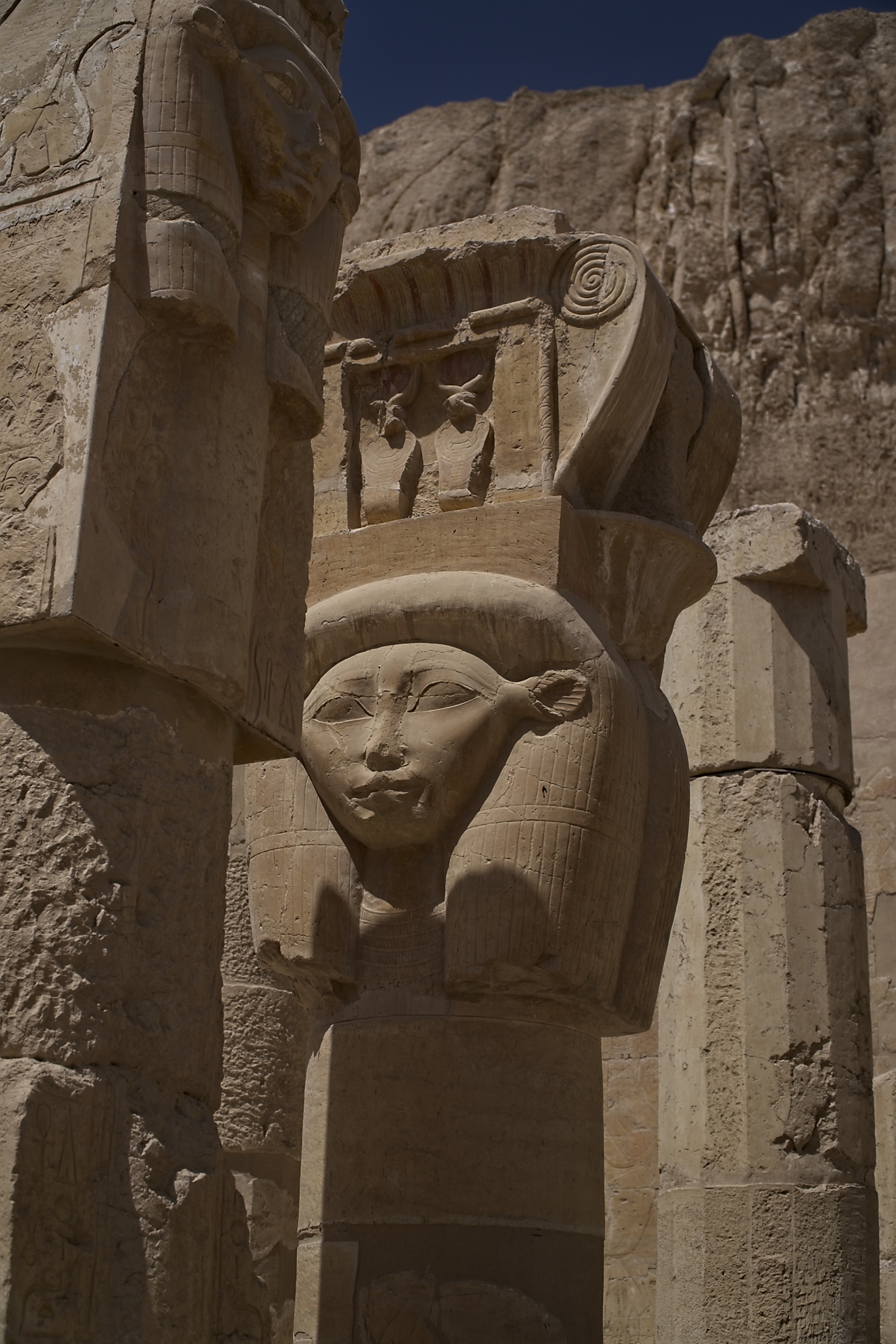 It also needed a lot of work because the temple was vandalised over the centuries: Tuthmosis III removed his stepmother’s name whenever he could; Akhenaten removed all references to Amun; and the early Christians turned it into a monastery, Deir Al Bahri (Monastery of the North), and defaced the pagan reliefs.