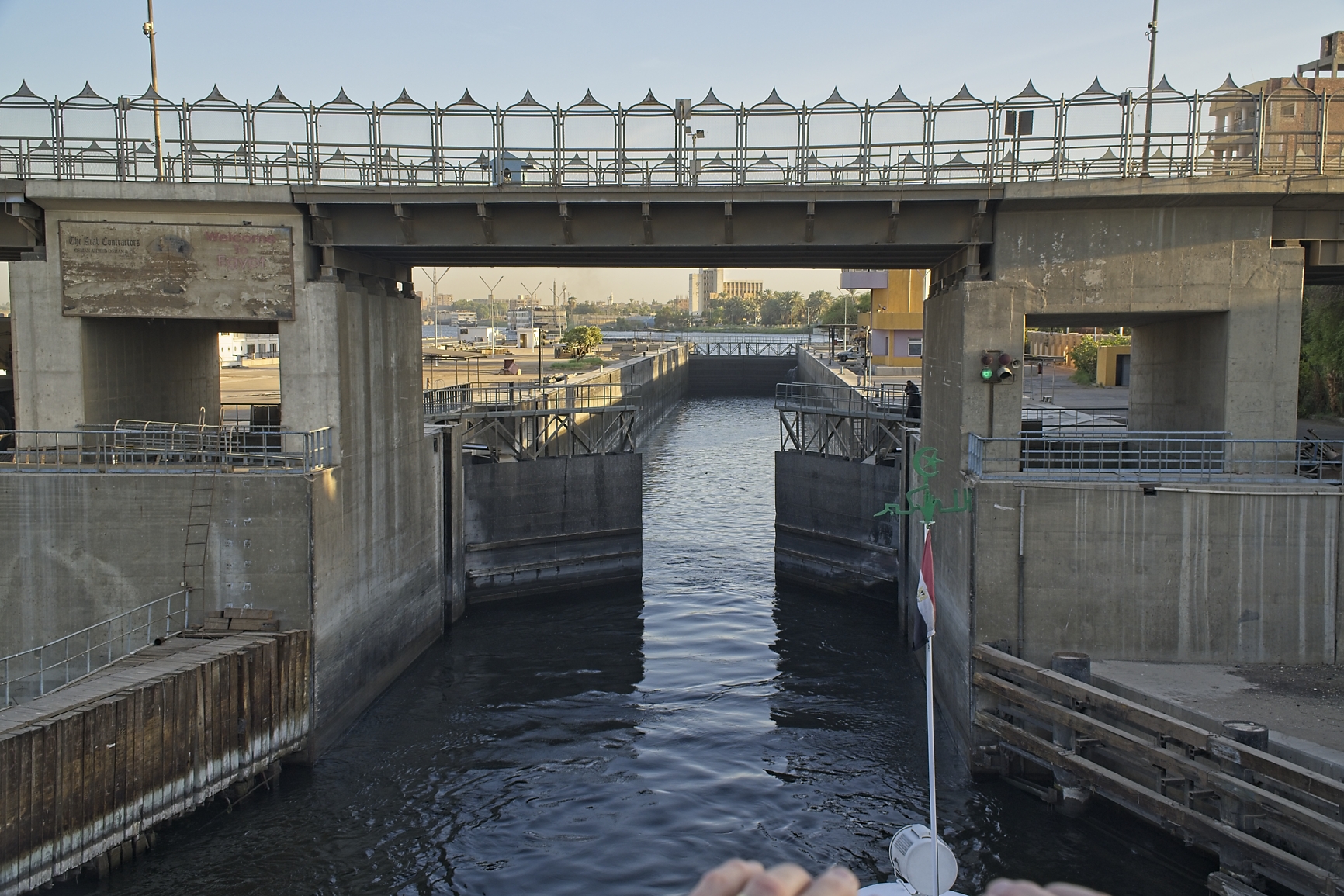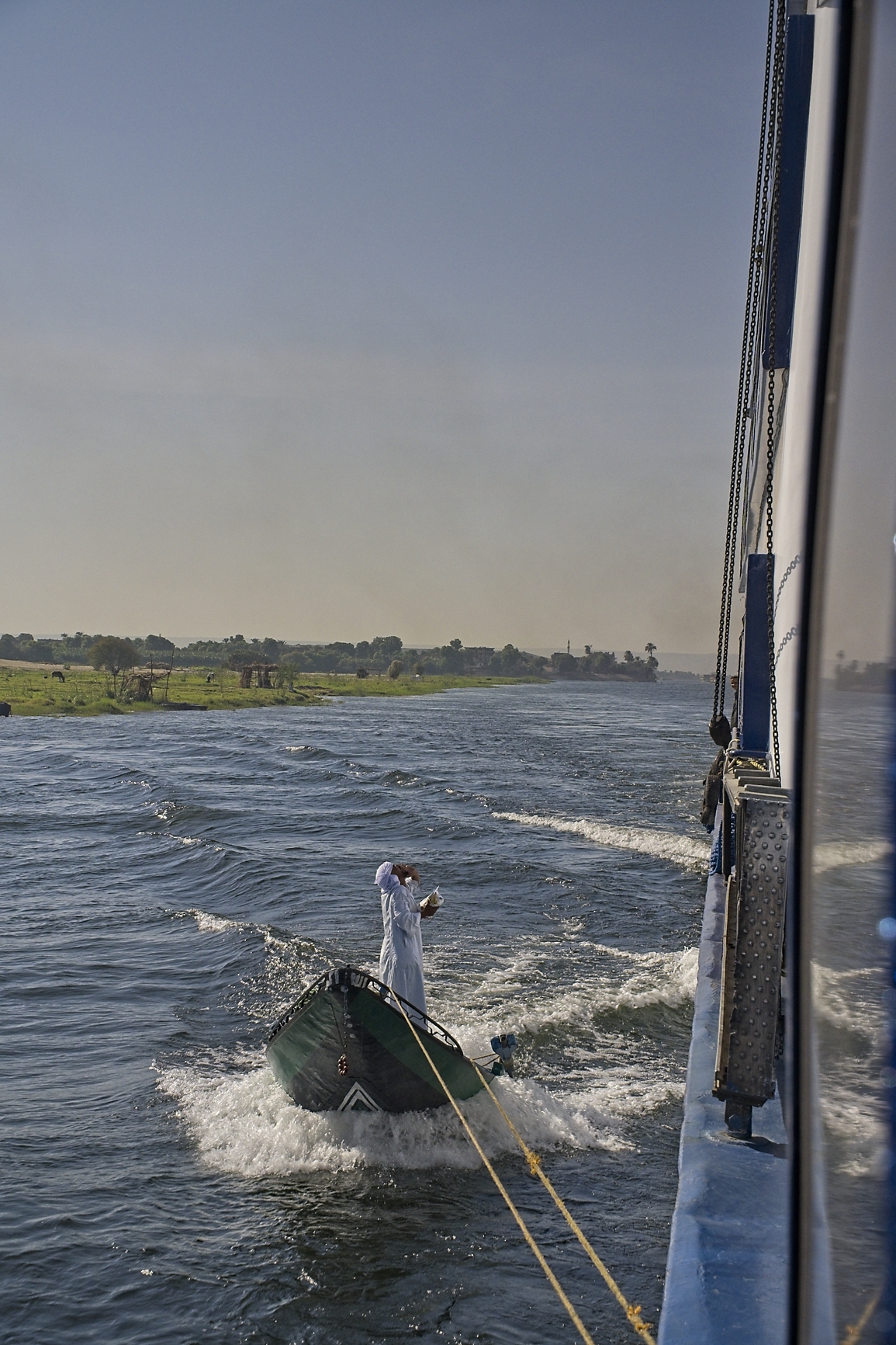 After getting back on board it was time for lunch and to start our actual Nile cruise, we will be sailing overnight to Edfu. To get there we will have to pass the Esna Navigational lock. This is a perfect opportunity for the local “trades people” to sell their wares while the boat is waiting for the lock. This whole event is just hilarious, they even hook on while the boat is still going to try to sell their things. There is a lot of yelling going on and if you show any interest they throw the towel, table cloth, shirt or whatever packed in plastic to you, then you agree on a price, put the money in the plastic bag and throw that back to them. It was very funny to see that all.
