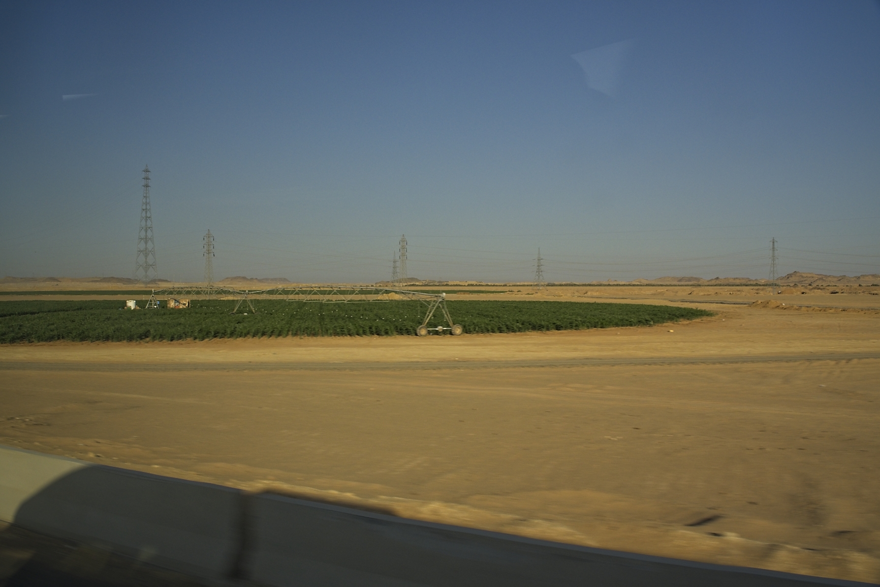 It is also interesting to see several developments happening in the desert, as I mentioned before when they created the High Dam they did introduce some issues down stream. One of them was less flooding, this means that fertile soil is no lnger deposited in those areas. As a result the green sides on both sides of the Nile has shrunk considerable. To compansate for this the Egyptians dug two major canals from the Nile into the deset, one of 80 Km and one of 65 Km long. On our long drive we passed many farms in development and a very big one in full operation, interesting here is that most of these farms are owned and operated by the military.