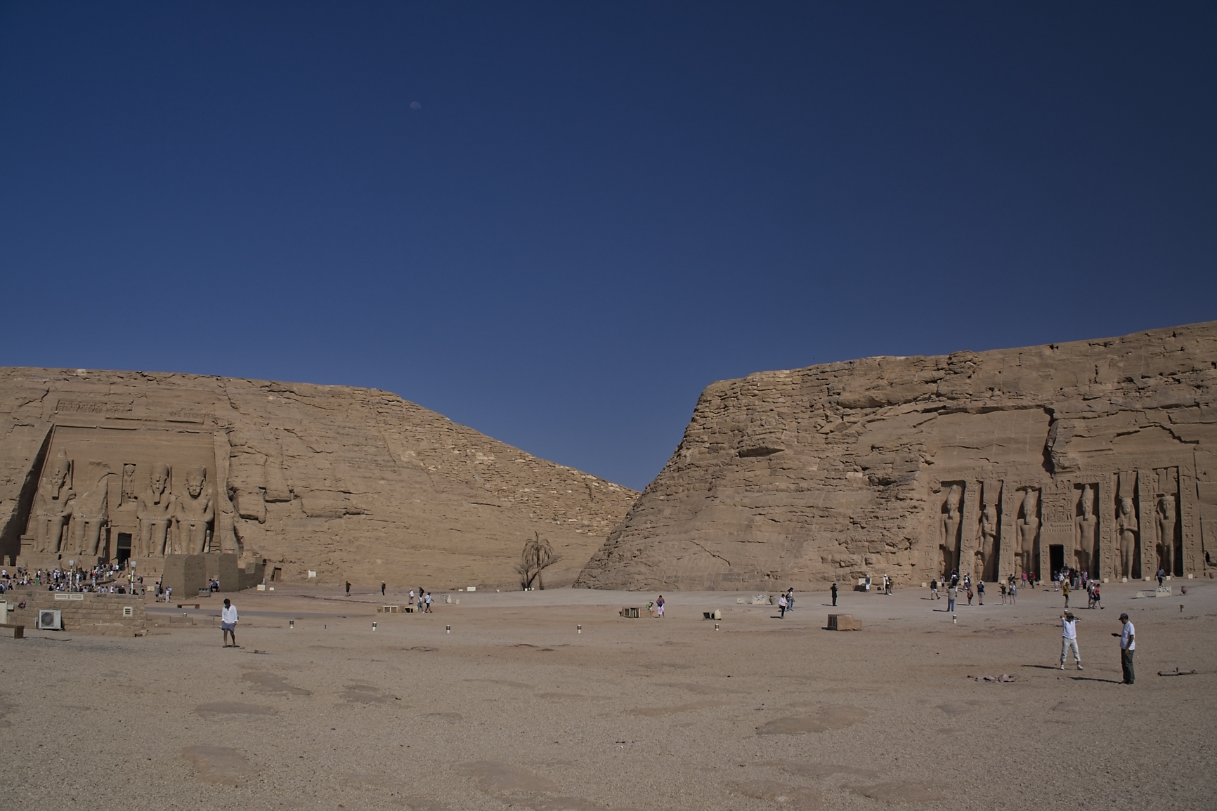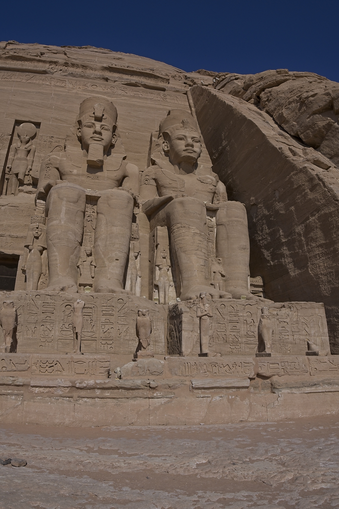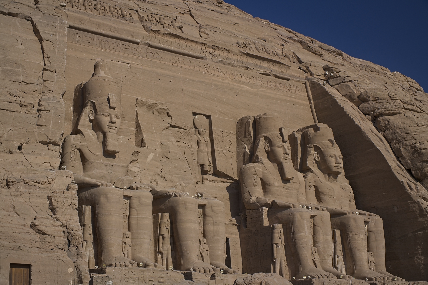 Today we will be spending a lot of time in the bus, it is quite a way to visit Abu Simbel, but it was worth the ride. The Great Temple of Abu Simbel, in Nubia near Egypt’s southern border, is amongst the most awe-inspiring monuments of Egypt. It was cut into the living rock by King Ramesses II (the Great) of the Nineteenth Dynasty, around 1264 BC. The temple is most well known for the four imposing seated colossal statues that dominate its façade. One of these collapsed because of an ancient earthquake, and its fragments can still be seen on the ground.